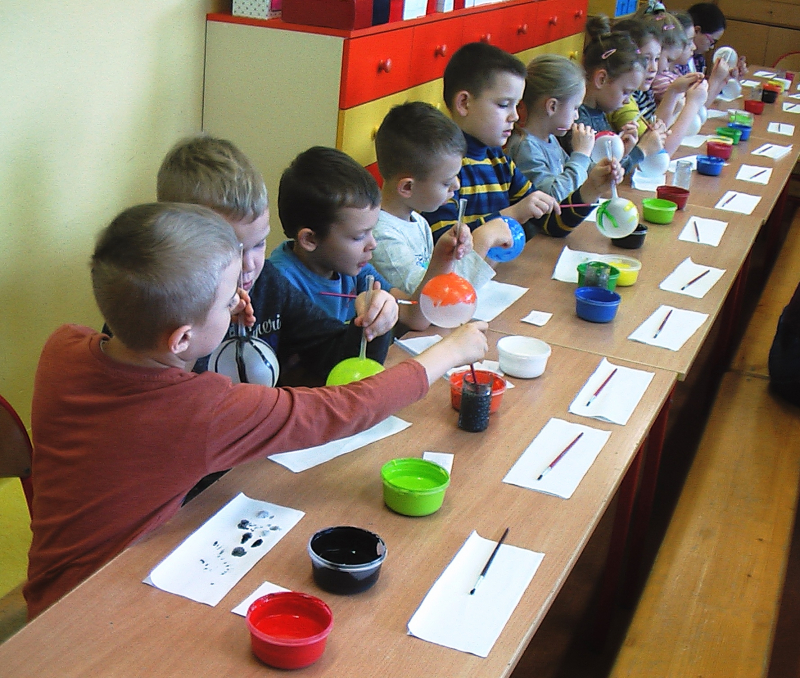 30 listopada 2018 roku w Publicznej Szkole Podstawowej im. Kardynała Stefana Wyszyńskiego odbyły się warsztaty plastyczne – „Malowanie szklanych bombek” przeprowadzone przez pracownię artystyczną „Ralfik” ze Skarżyska – Kamiennej. Prowadząca przybliżyła dzieciom w jaki sposób wydmuchiwane są szklane bańki. Uczniowie klas 1 – 8 stworzyli własnoręcznie swoje małe arcydzieła w postaci świątecznych bombek. Kolorystyka i różnorodność sposobów ozdabiania budziła zachwyt i wskazywała na twórcze i profesjonalne podejście do zadania naszych uczniów. Warsztaty plastyczne to chwile podczas których można było wykazać się pomysłowością i kreatywnością malując własne bombki. Na szklanych bombkach dzieci tworzyły fantastyczne wzory własnego pomysłu. Używały różnego rodzaju brokatów do podkreślenia piękna tworzonej pracy. Wszystkie bombki malowane były w tradycyjny sposób, zachowując ręczny charakter wytwarzania – tak powstają prawdziwe dzieła sztuki. Praca ta wymagała niezwykłej precyzji, trudu i spokoju. Dzieci zobaczyły ile pracy, wysiłku i cierpliwości wymaga przygotowanie bombki do sprzedaży. Poznały jakie zawody związane są z wytwarzaniem bombek. Wysuszone i zapakowane bombki dzieci zabrały do domu. Uczniowie zauważyli, że aby stworzyć coś pięknego, pochodzącego od serca i wykonanego własnymi rękami wymaga wysiłku i cierpliwości.